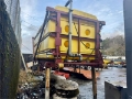 Lakespreder for flytende spredning, montert på eget understell.