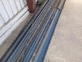 1 stk. Transportbånd med skinner, 35 m, med ny bånd.